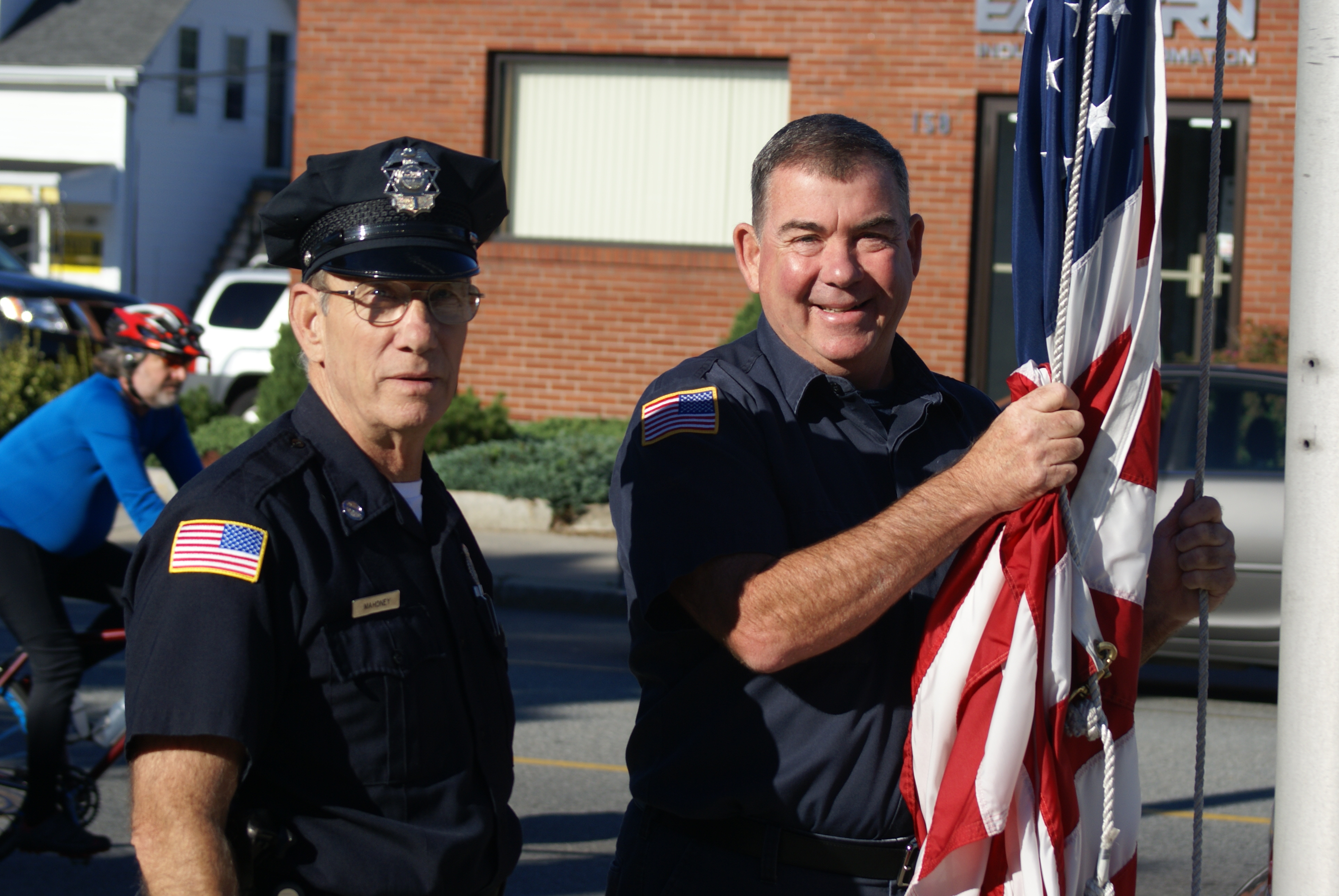 Officer Miguel Marrero’s (L) last day. Captain Kevin O’Connell (R) Sept. 2015